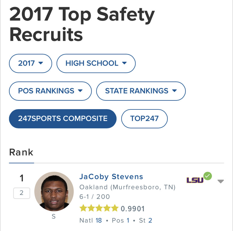 Here’s a list of the 4 and 5 star corners and safeties who enrolled at LSU under Raymond’s recruitment: