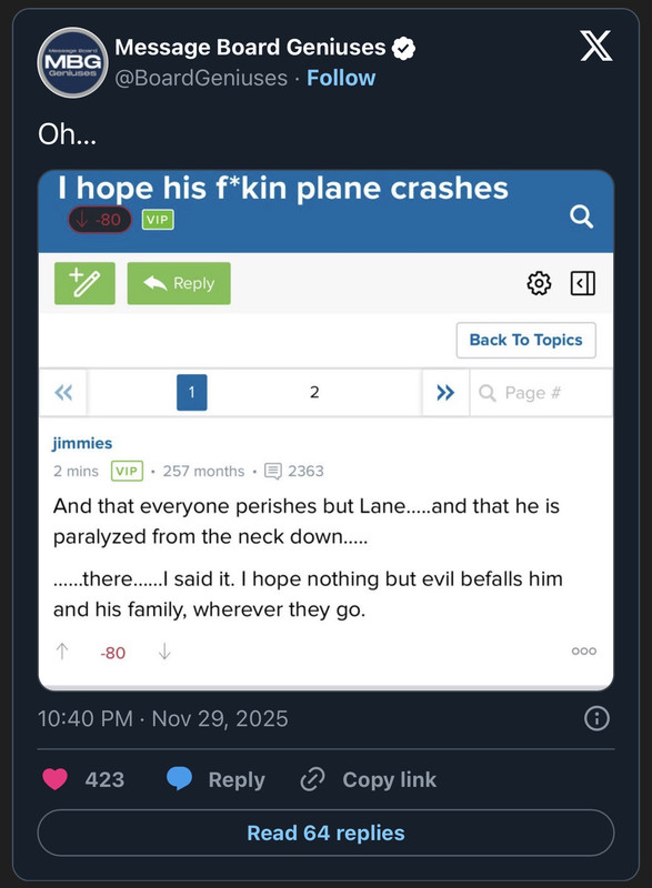 lane has ruined all goodwill he made with this move. What a POS dirt bag