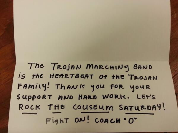 Ed Orgeron Sent Hand-Written Notes To Every USC Marching Band Member