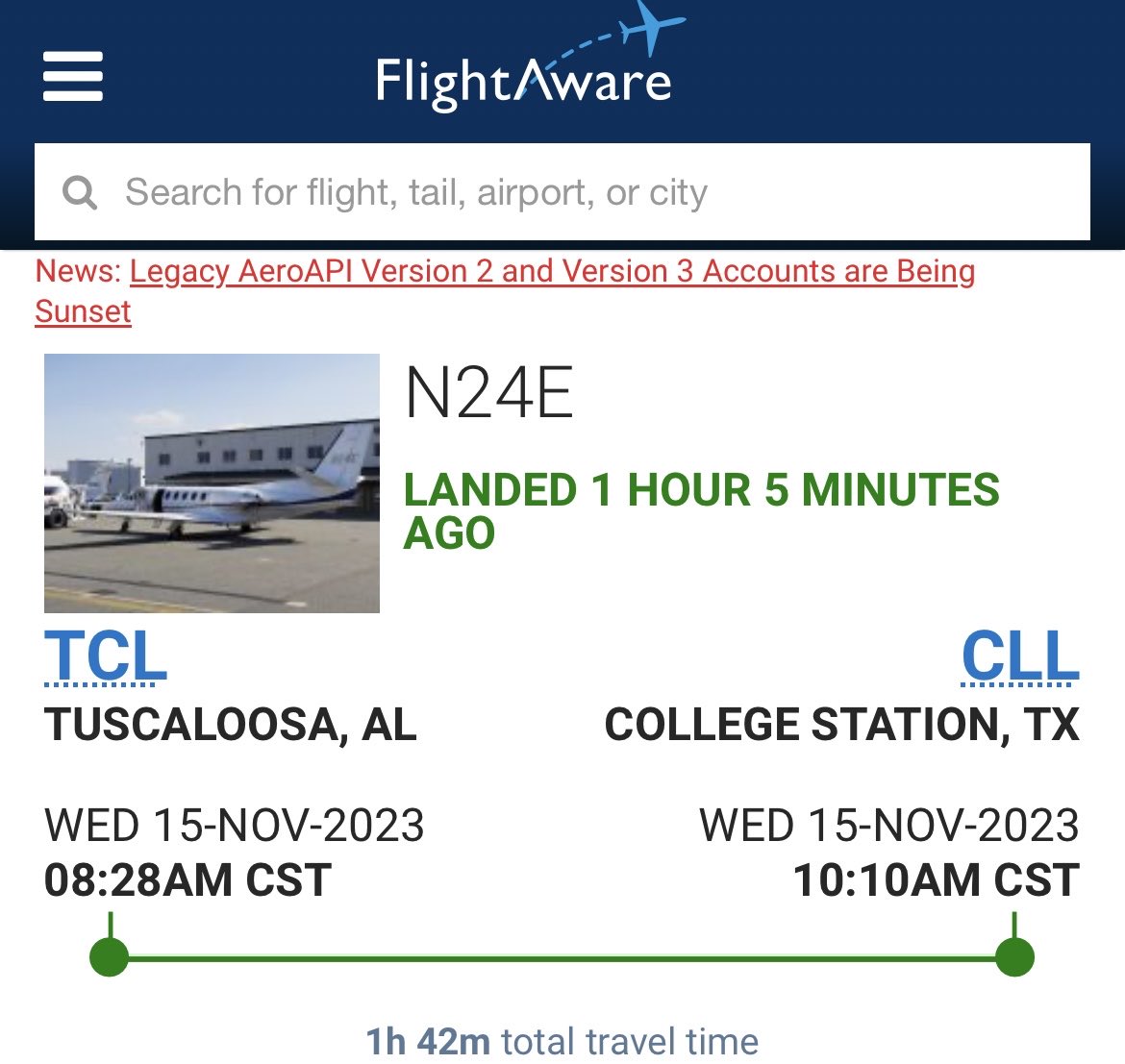 FlightAware - Tuscaloosa to C-Stat