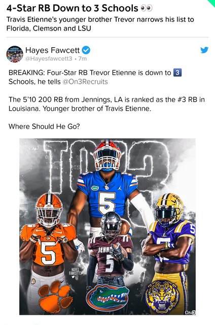 Correct me if I’m wrong but he has LSU listed in his top five schools already.