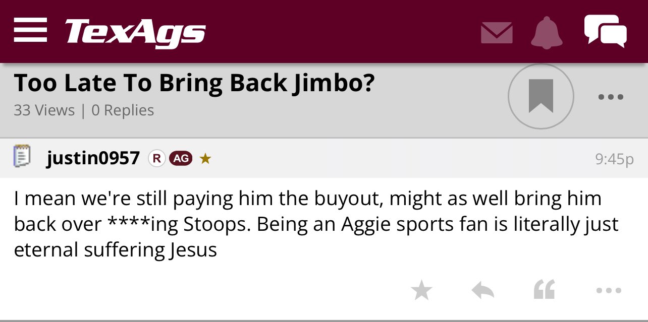 A&M just want to say thank you from the bottom of my heart. You guys doing us State folks a solid hiring Mark Stoops so UK can hire Meathead Sumrall. Bravo gentlemen.