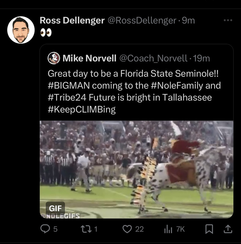 Great day to be a Florida State Seminole!! #BIGMAN coming to the #NoleFamily and #Tribe24 Future is bright in Tallahassee #KeepCLIMBing