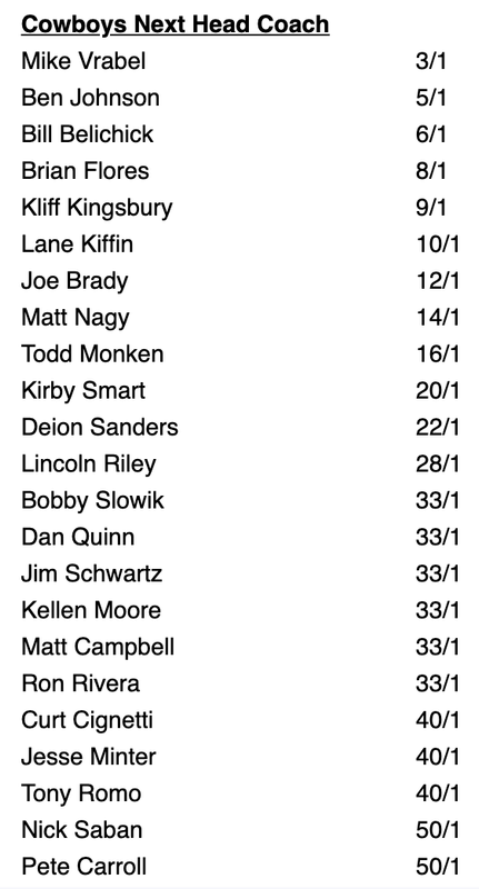 Odds to be the next Cowboys coach...If/when McCarthy gets fired...