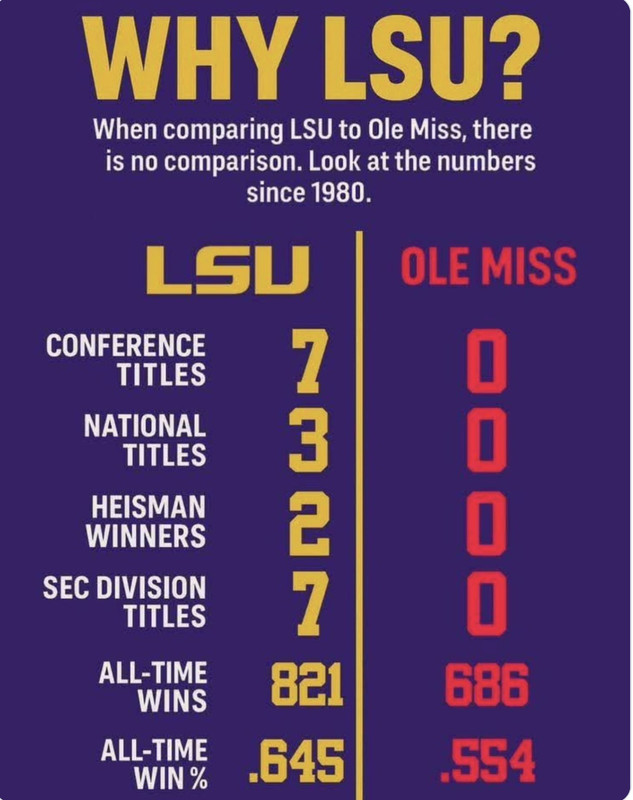 In their heads much like A&M they think they are equals to LSU. Both could take a step in the right direction winning in the playoff but currently not even close to LSU.