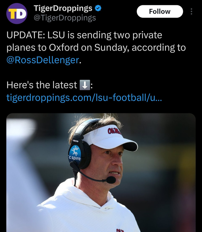 re LSU is sending two private planes to Oxford on Sunday,