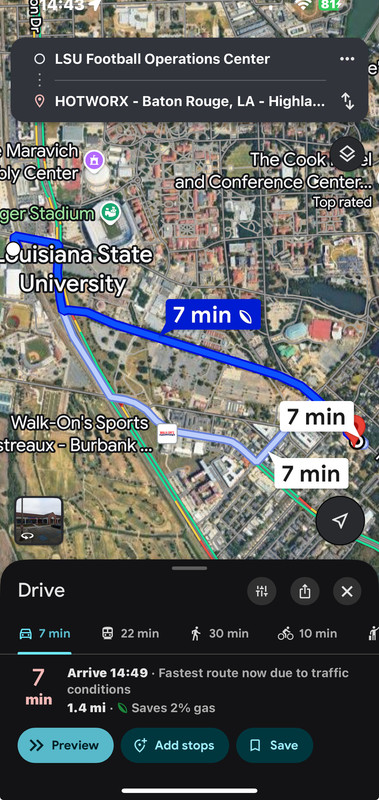 Just 1.4 miles away from the football ops building