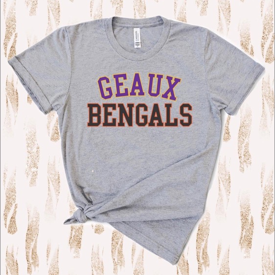 Looking for a shirt that has the mix of LSU and Bengals with Burrow and/or Chase. Have looked all over. Anyone know where to find this locally or internet?