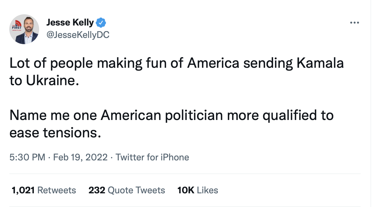 So let's send the person who's supposed to be overlooking that to negotiate the integrity of Ukraine's border since she's been so effective with the US-Mexico border.....