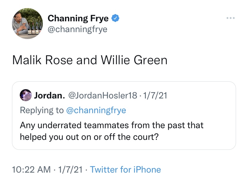 Channing Frye clapped back at Perk on Twitter after he praised the Pels.