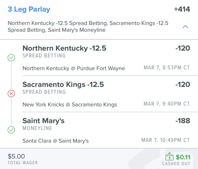 I decided to cash-out on a 3-leg parlay that was going south quickly while I still had the chance. They already took enough of my money. They weren’t getting this last 11¢.