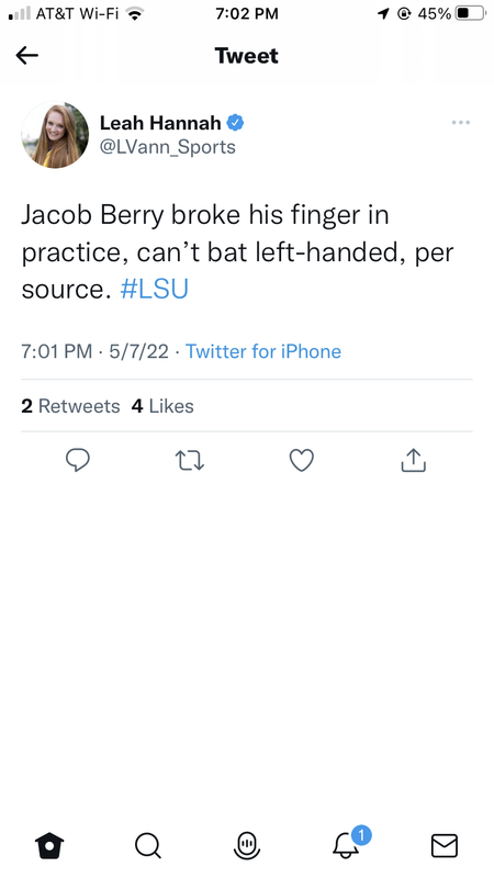 Kind of funny that the lead draft analyst for espn tweeted that out and then 8 minutes later the LSU beat writer tweeted that she didn’t know why he wasn’t in the lineup.