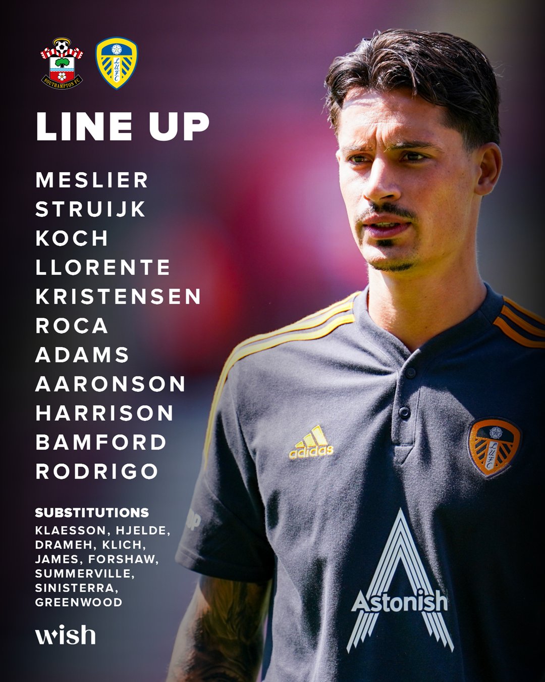 Joe Gelhardt and Liam Cooper didn’t make the sub list today. Forshaw, Sinisterra and James On the bench now.