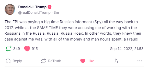 Trump just concisely Truthed the FBI/Russian Conspiracy.