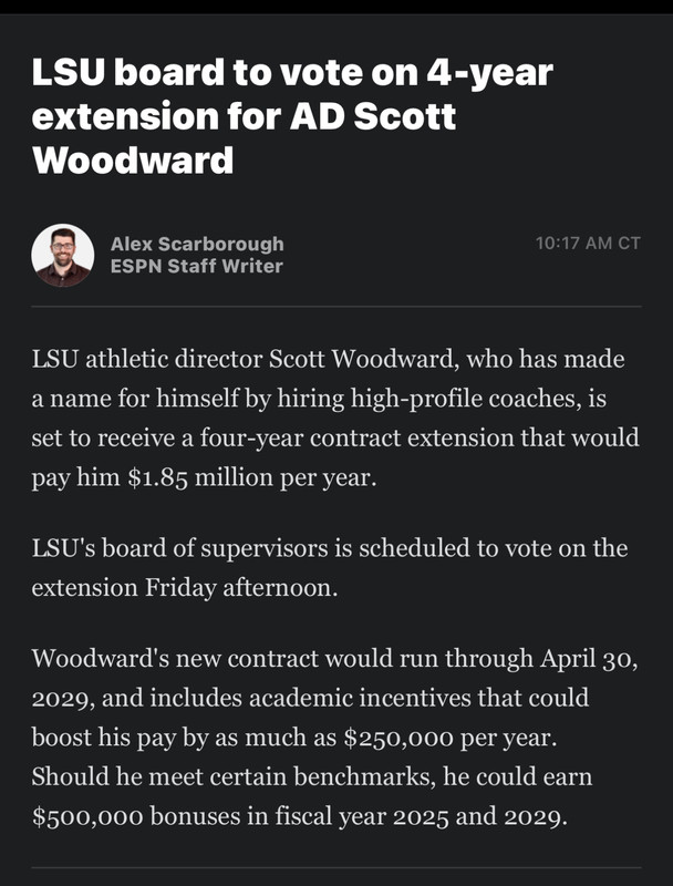 A more creative approach would amend Woodward's existing contract today to include incentives like a huge payoff Jan. 1, 2026 if LSU athletics produces/vies for championships in the three major sports between now and then.