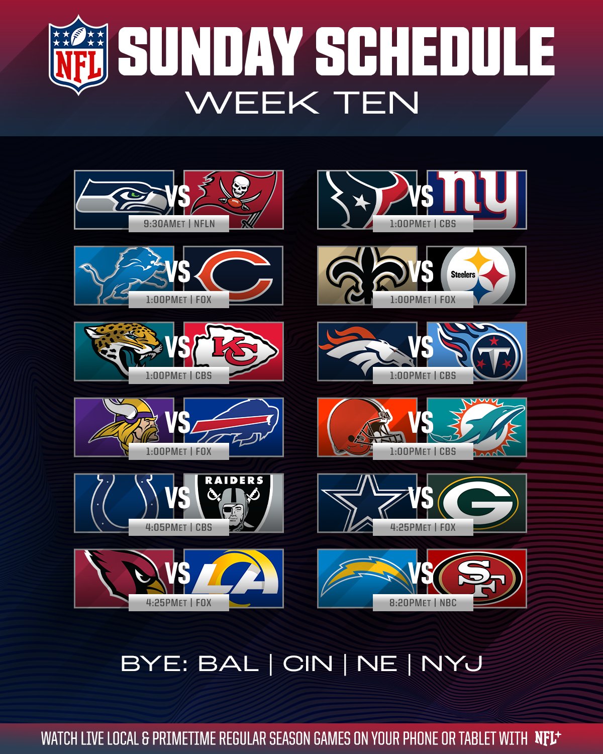 Munich game is this morning at 8:30 AM CST, so I’m starting this thread early. Hard to believe it’s already week 10.