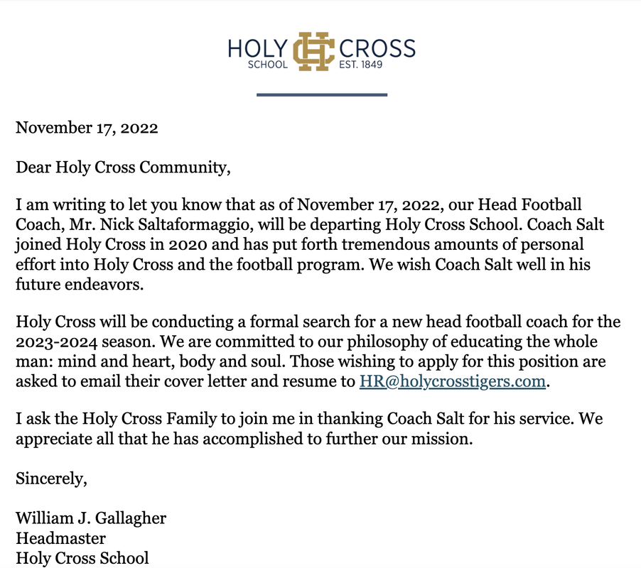 New head master probably wants his own guy. I like Nick, but he wasn't a great fit there, despite the fact that he was an alum.