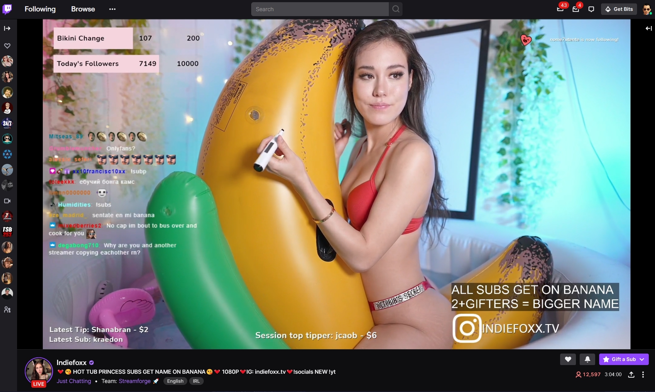 Subs to all the chicks riding bananas on Twitch. Only like $5/girl