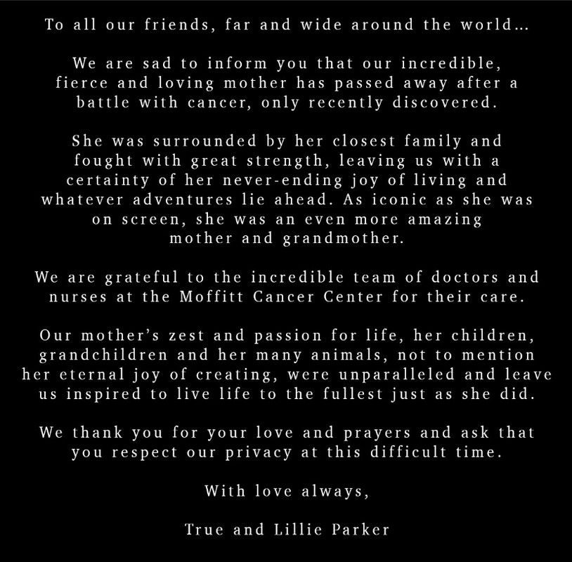 Damn. Hate to hear that. I’ll always remember her from Look Who’s Talking.