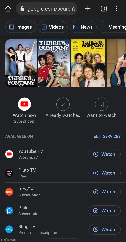 Three's company was a huge success in the eighties. Now it's not in syndication at all...makes you go, "Huh"
