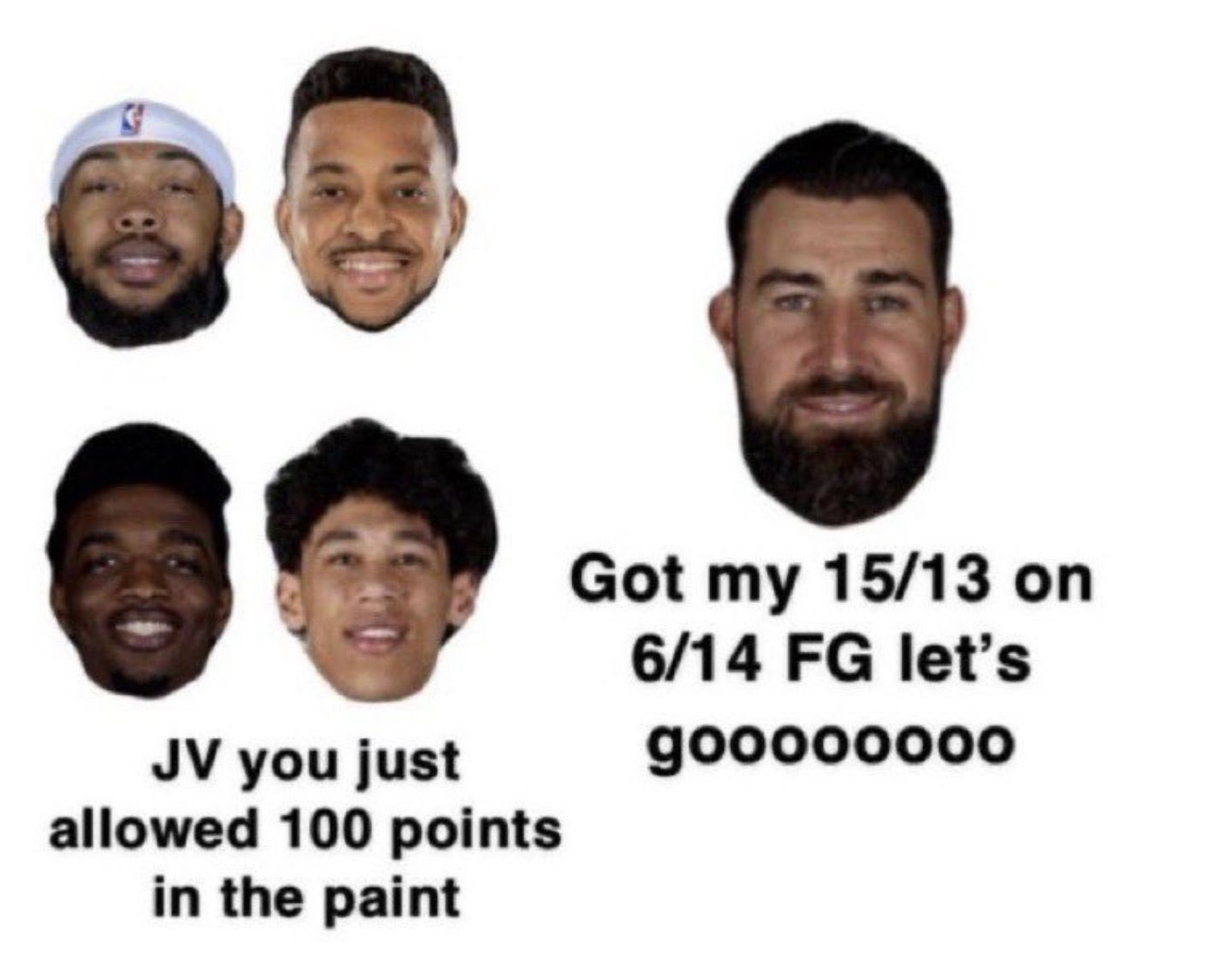 You act like people defend JV as if he's a core piece. He's the piece we have and upgrading him without getting lucky in the draft is going to be difficult and costly. That's all I've ever said, how do we realistically upgrade JV? And are the players some of us are targeting actual upgrades or just lateral moves you're going to pay a lot for now and then complain as much about later as you do now with JV because it's a lateral move that opens up as many holes as it plugs?