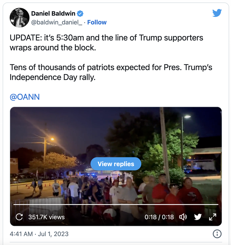Trump’s Independence Day rally, 4:30am and the line of supporters wraps around the block