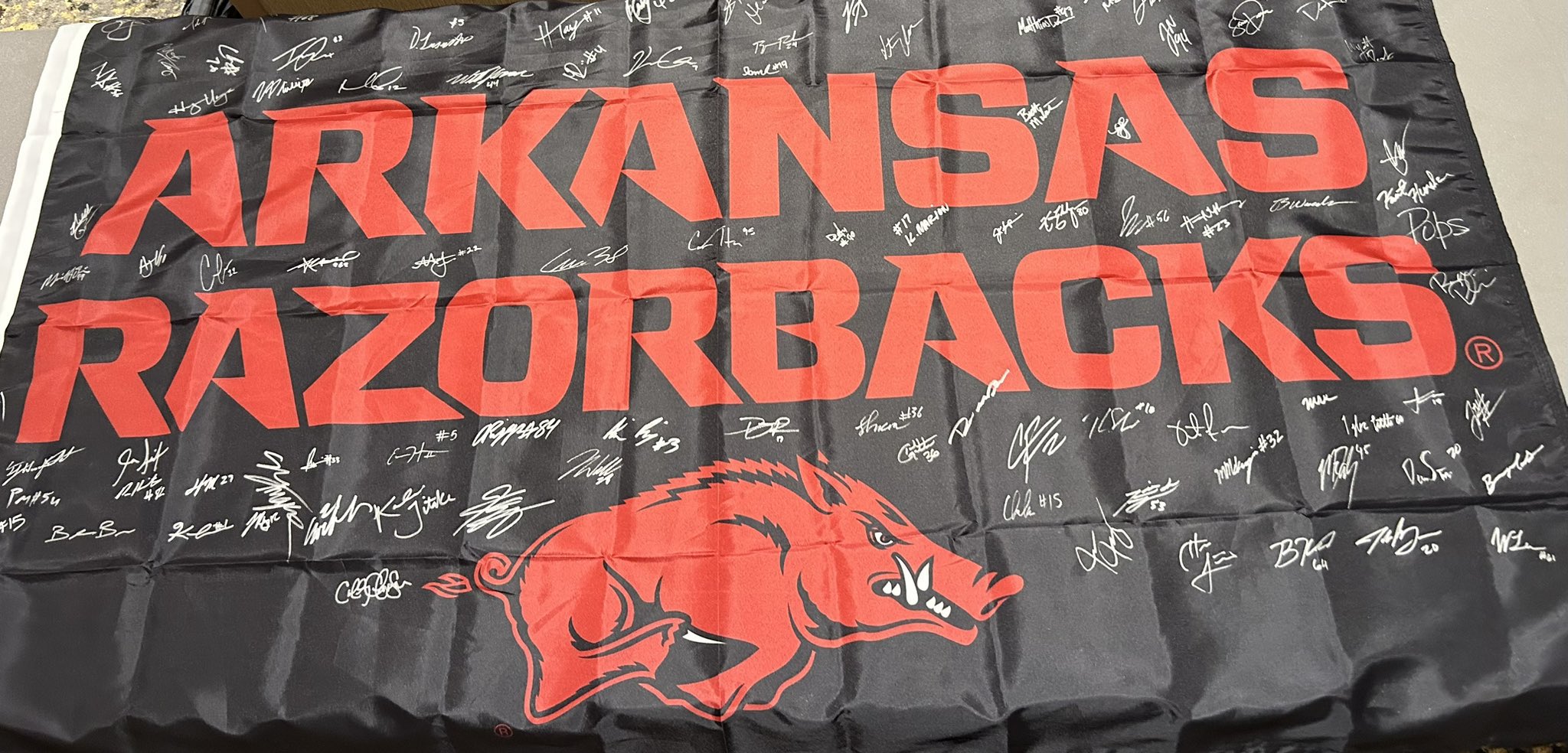 The whole team signed it in honor of Ryan Mallet and Alex Collins and gave it to the Arkansas Razorbacks cheerleaders! They also showed up with a couple of semi trucks full of food to donate to our local food pantries. If we was gunna lose to anybody, I prefer it be them! Classy!