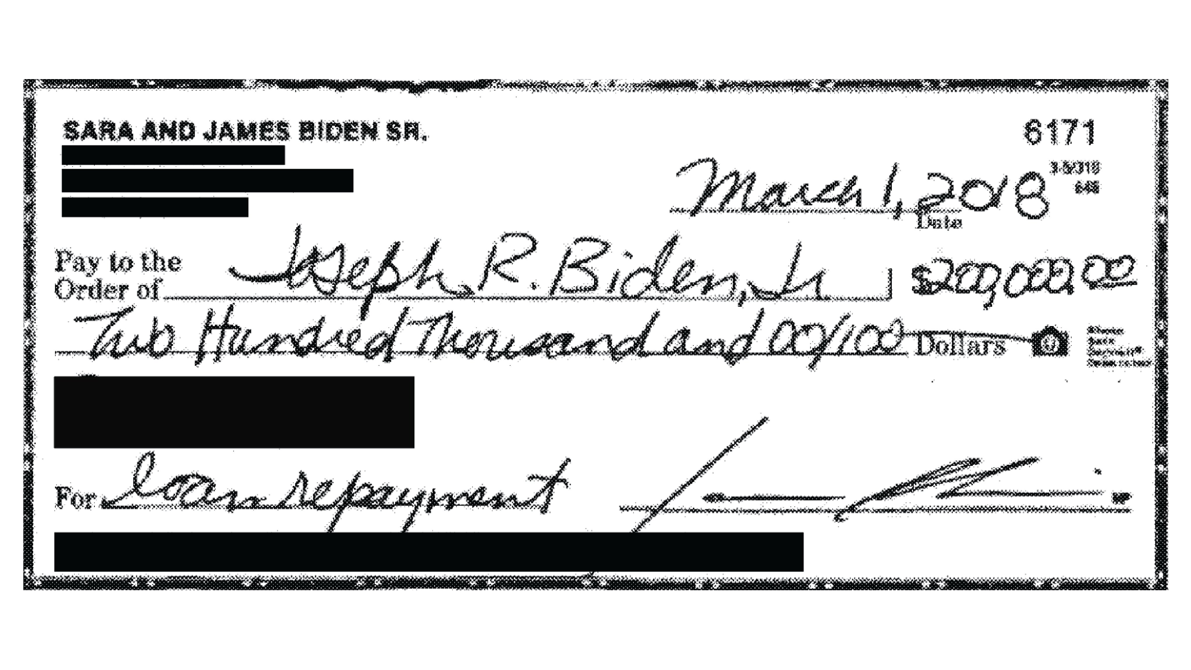 ON THE EXACT SAME DAY, James Biden writes a check from the same account for 200k to Joe.