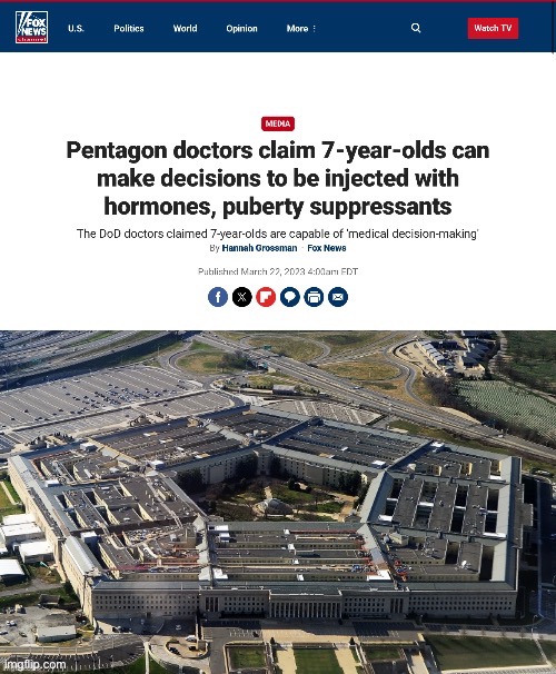 Don’t kid yourself: we are meat to be put into a meat-grinder. The Pentagon indeed supports mutilating children.