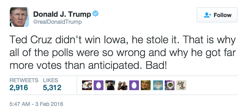 A reminder of how he reacted to losing the 2016 Iowa Caucus.