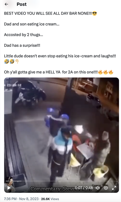 Dad and son eating ice cream are accosted by 2 thugs; Dad has a surprise!