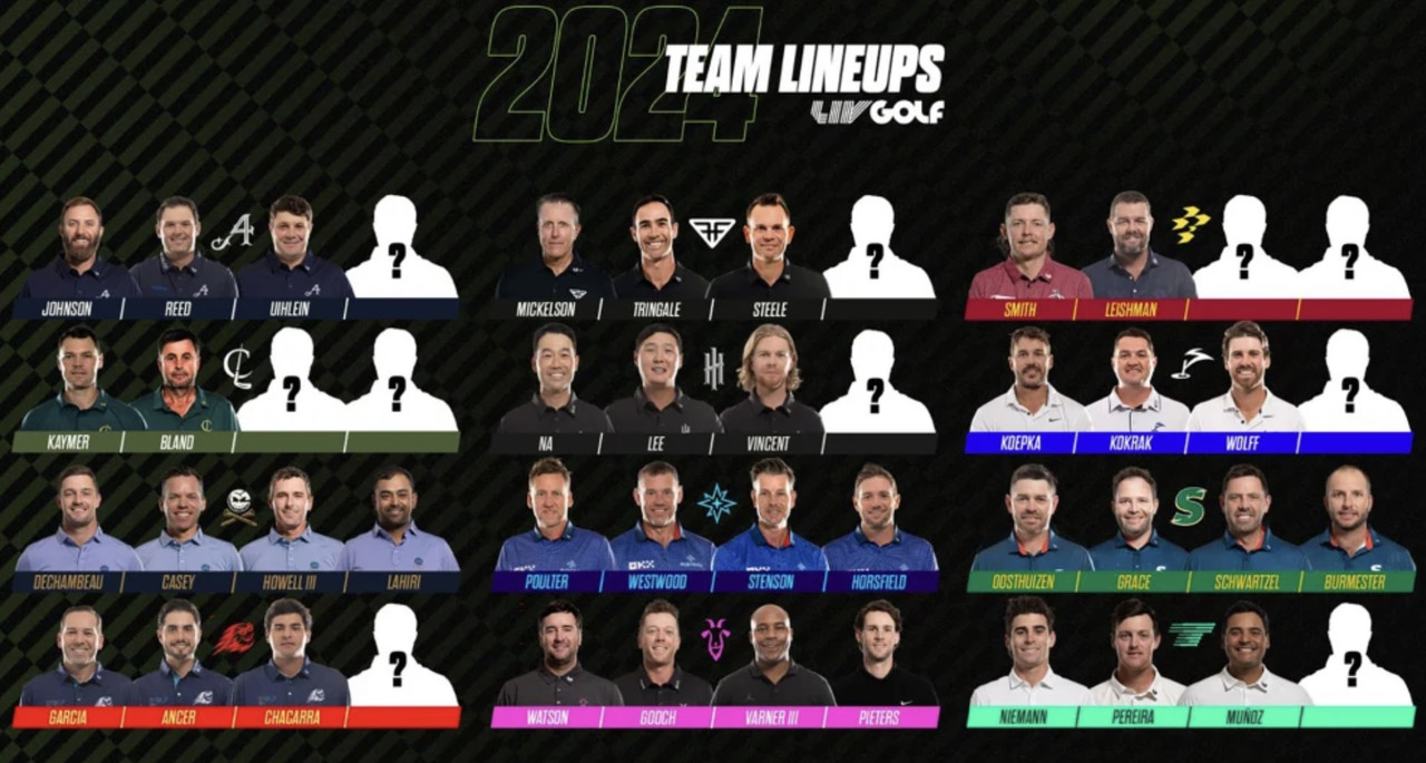 Final roster posted. LIV Golf confirms there will be 54 total players on LIV this year, 13 teams of 4 plus 2 additional wildcards
