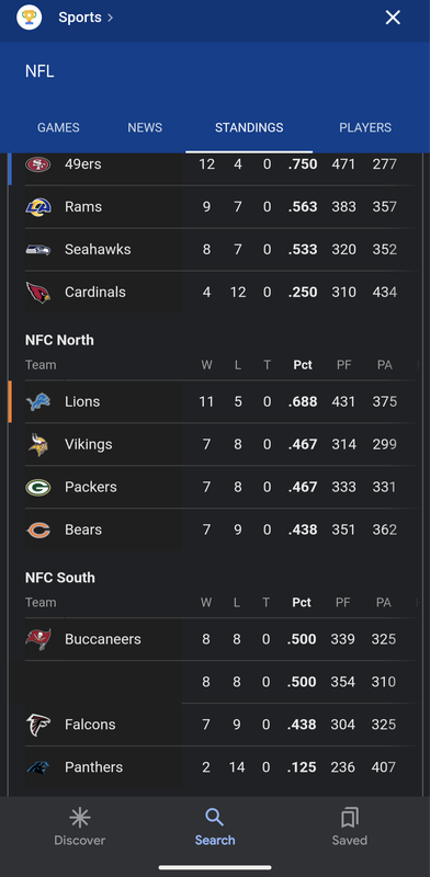 I like to enjoy one game at a time. Next week we get Atlanta. No matter what gloom you like to wallow in, beating Atlanta will the highlight of my week. They played like a team last week. If the season ends without a playoff spot, beating Atlanta will finish the season with a positive.... Sorry, didn't mean to interrupt your crying...