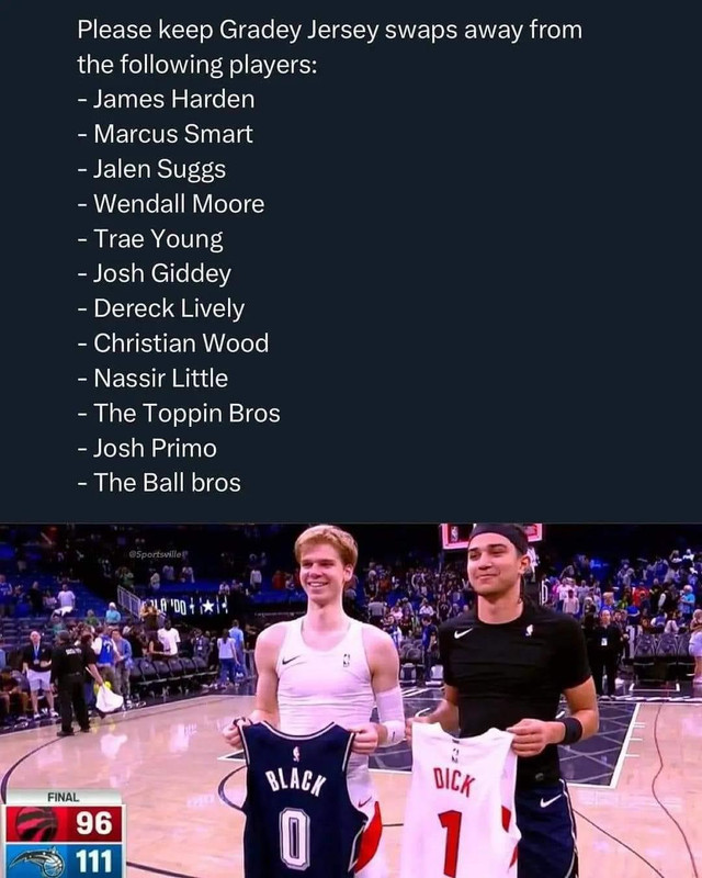 Gay is out of the League. However, Nassir Little, Draymond Green, and Derrick White are all possible jersey swap candidates with Gradey Dick.