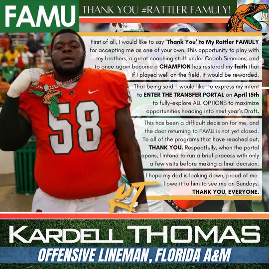 I kid you not, Kardell Thomas has entered the transfer portal again.