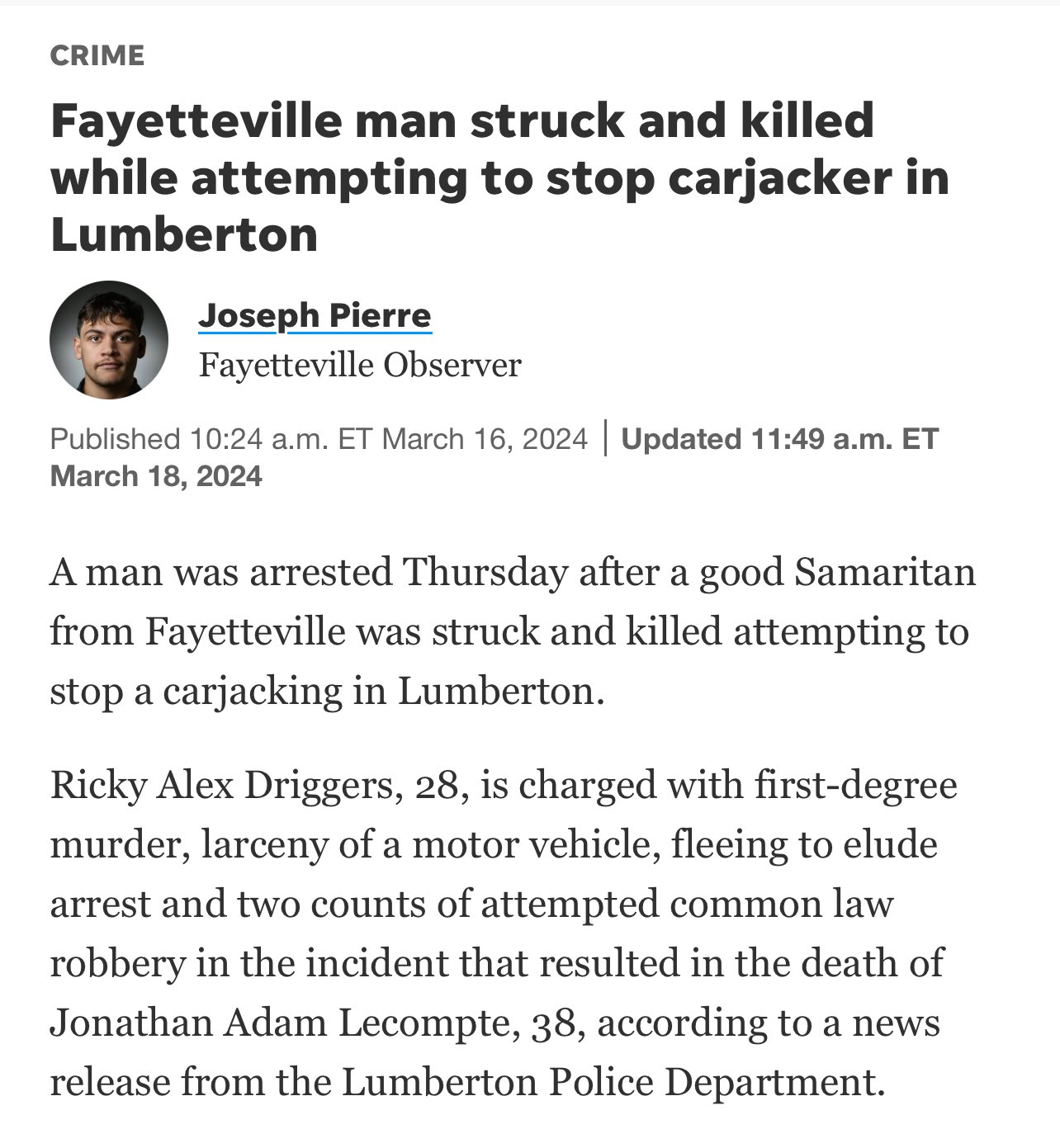 Carjacker escapes shooting then runs over vehicle owner in Lumberton, NC (NSFW video)