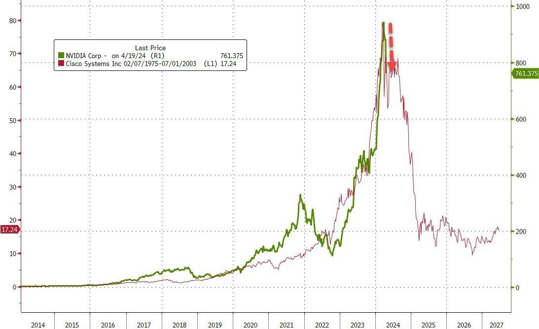 CSCO during the .COM Boom vs NVDA during the AI Boom