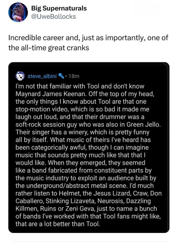 I like Tool … and many of those bands he listed, especially Neurosis