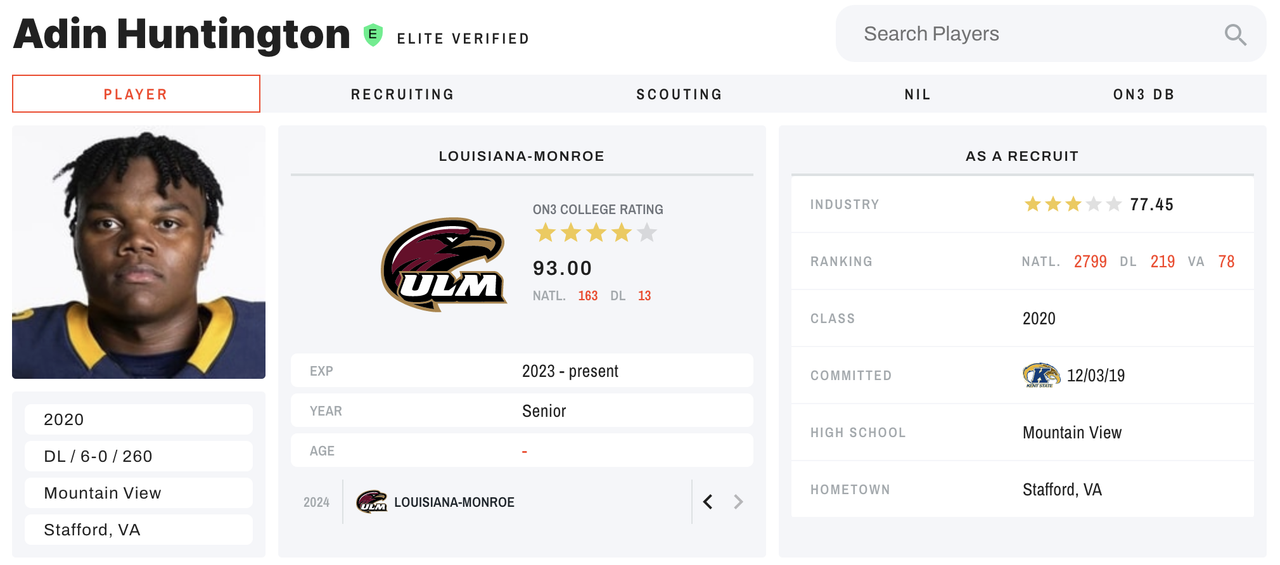 Suggs looked great in the videos I’ve seen but ON3 has him rated at 87.5 and the 435th best transfer, while Adin is rated 88.85 and the 270th best transfer. I wonder if ON3 sees him at another position? At 6’ and 260, that’s awfully small.