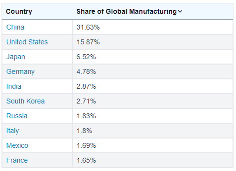 What do we manufacture? What is a "share of global manufacturing"? Everything is made overseas