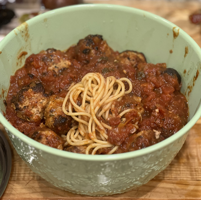 Wife’s working. A couple of baked chicken thighs, leftover doctored up canned butter beans and some tomato slices. Will cook and feed my bartender tomorrow. :)