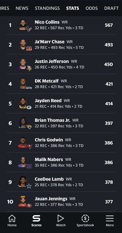 And at the college level, two Louisiana guys among the top receivers in the FBS -- Tre Harris and Jack Bech.
