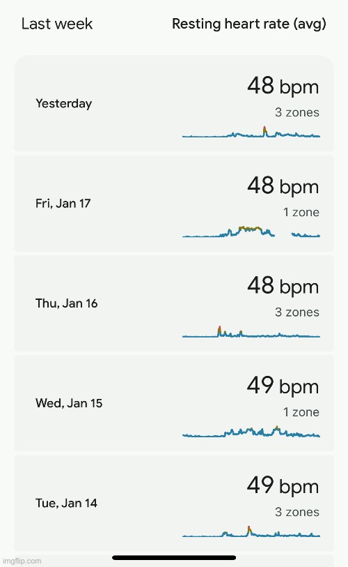 I am not drinking from December thru March, and my resting heart rate has gone from 55 to 48