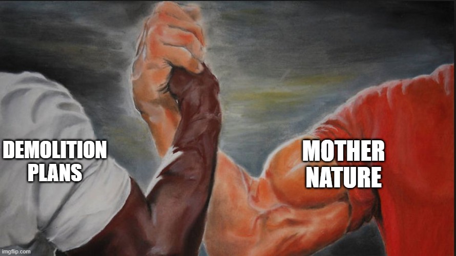 That’s just Stan’s negotiating strategy for a big economic development incentive deal from the city. Create and leave a huge eyesore that everyone hates until he gets handed millions in tax abatements to remedy.