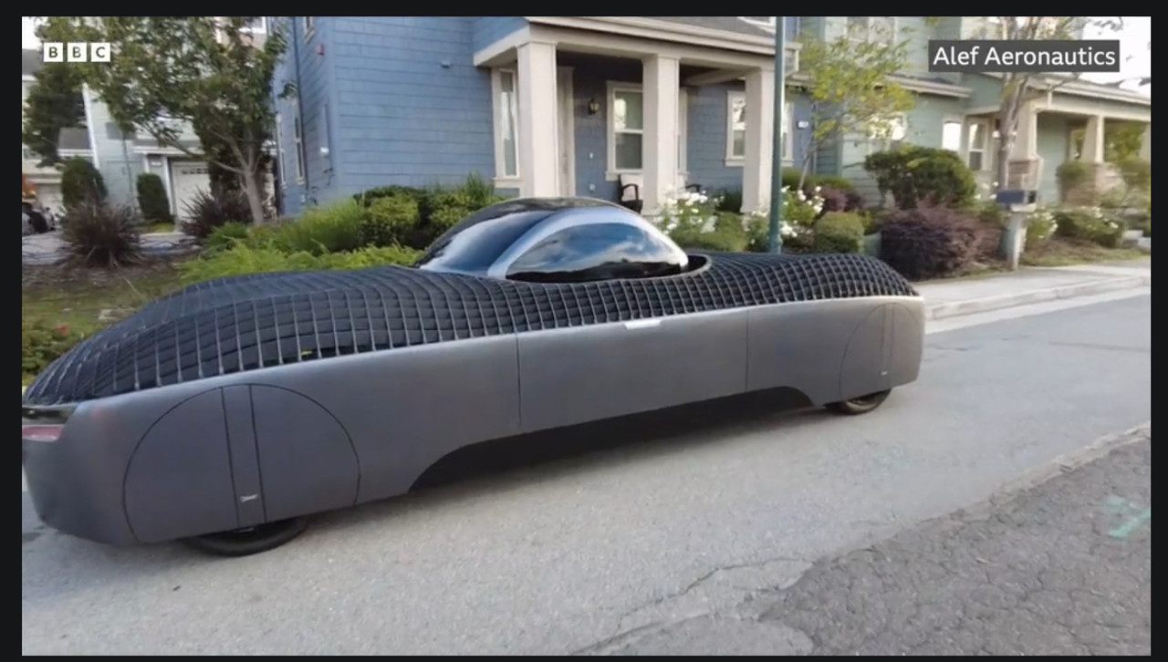 An aeronautical company in the US has released footage showing a concept version of its flying car performing a vertical take-off before flying over an SUV. Jim Dukhovny, the CEO of Alef Aeronautics, told the BBC's senior technology reporter Chris Vallance, that he had thousands of pre-orders and hoped to start production within 12 months. For around $300,000 (£237,000) the company says buyers will get an electric flying car with a predicted airborne range of 110km (68 miles). But taking a friend for a spin may prove tricky - the cockpit only has enough room for one and a half people. As Vallance points out, Alef Aeronautics are not the only ones trying to make flying cars take off with buyers, and there are huge technological and regulatory hurdles to overcome