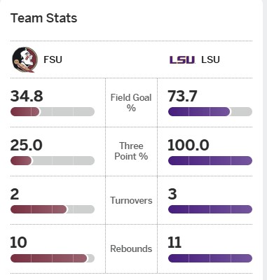 LSU shooting 73% to their 34%