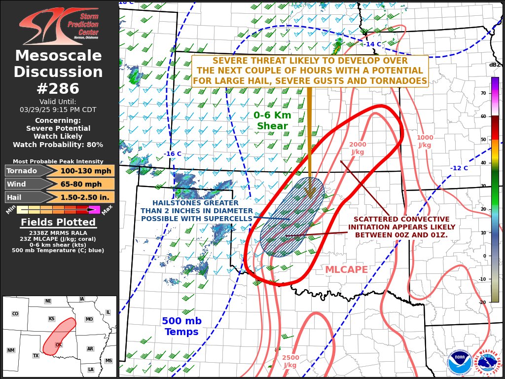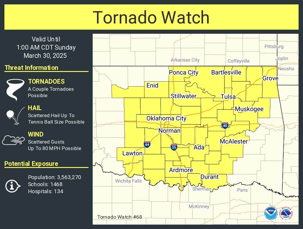 A tornado watch has been issued for parts of Oklahoma until 1 AM CDT