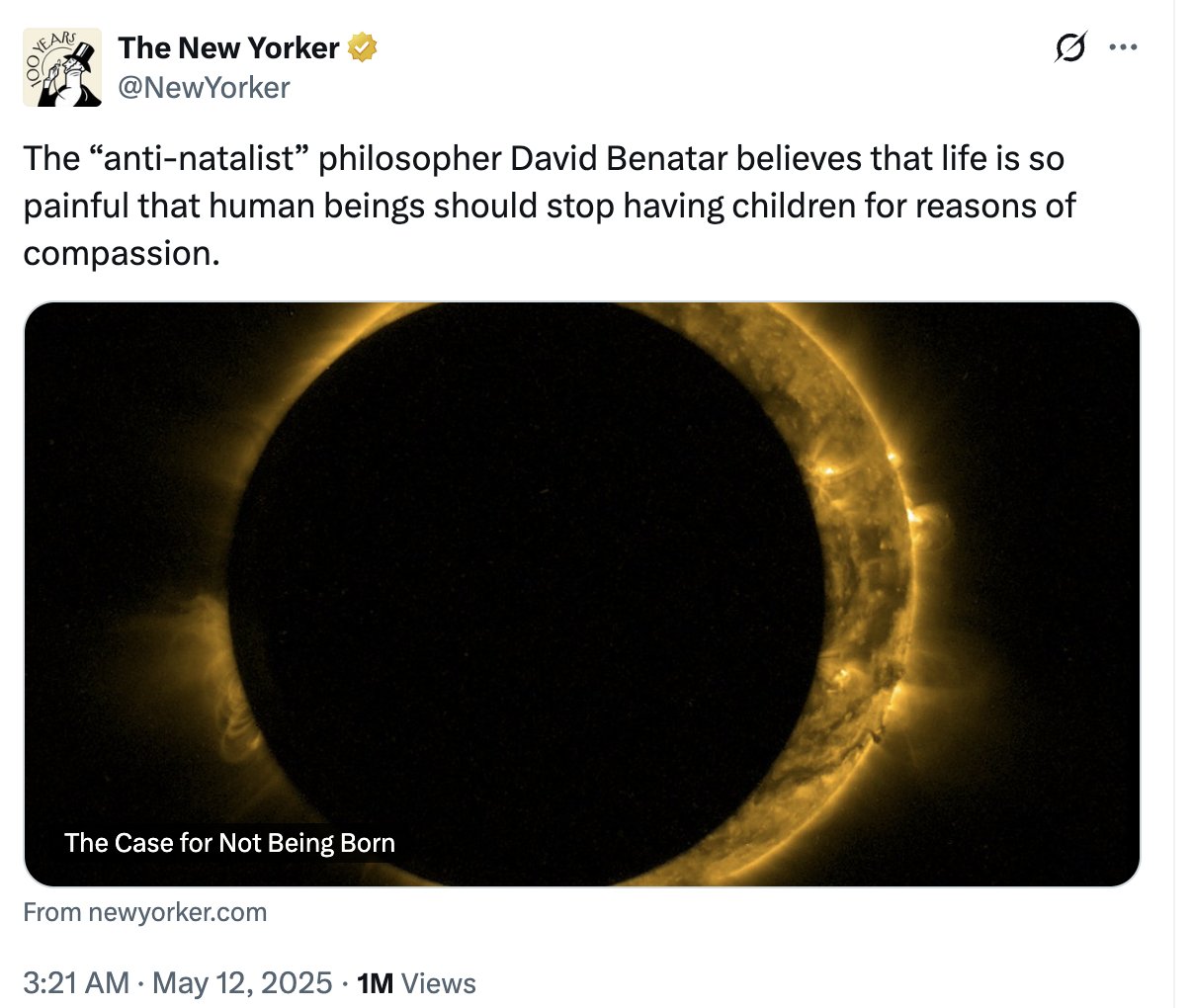 He's promoting the opposite stance, Efilism