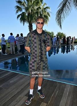 It's clearly fancy shorts and a shirt and matches the level of dress from everyone else there in the background of the picture.