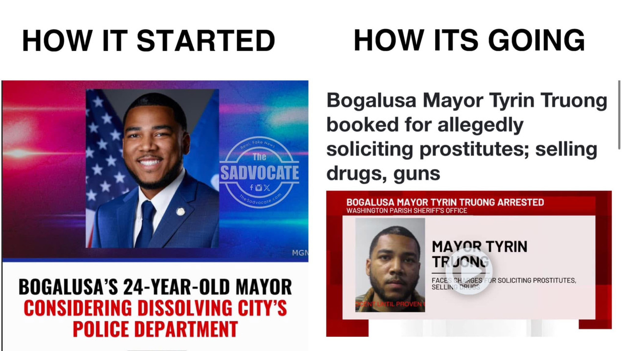 His behavior since taking office has probably won him more votes. It’s Bogalusa.